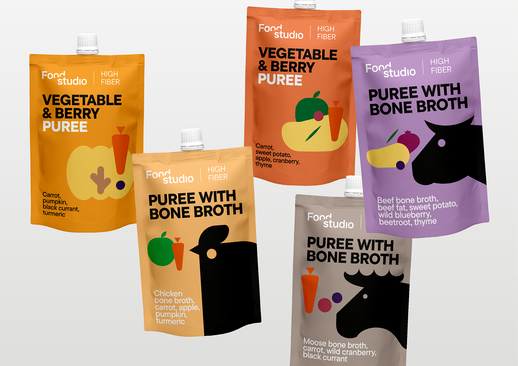 Lemmikloomatoitude uus tase – innovatiivne püreede sari kassidele ja koertele. Tootesari on saadaval ekslusiivselt lemmikloomapoodides. Lõime püreesarjale pakendilahenduse, mis sobituks visuaalselt ja kontseptuaalselt FoodStudio senise pakendiidentiteediga. Kui hoolid oma lemmikust päriselt, siis tead, kust seda otsida.